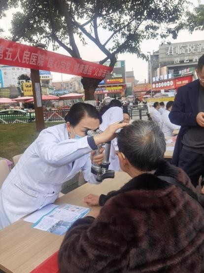 义诊现场,来自医院眼科、耳鼻喉科、儿科、心胸外科、肿瘤科、普外科、中医肛肠科、心身医学科、急诊科、体检中心、肾内科、药剂科、门诊部等多学科的医务人员秉持专业热情的服务态度,为前来咨询的市民细致问诊、检查身体,针对慢性病、常见病提供专业的治疗建议。这种“零距离”的服务方式,不仅缩短了物理上的就医距离,更拉近了医患之间的心灵距离。