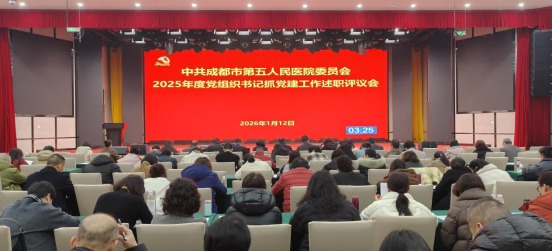 1月12日下午,成都市第五人民医院党委召开2025年度 党组织书记 抓党建工作述职评议会。会议紧扣全市“十五五”开局之年发展大局,聚焦医院高质量发展,压紧压实管党治党政治责任。院党政领导班子、党总支书记、党支部书记、支部委员及党员代表150余人参会。