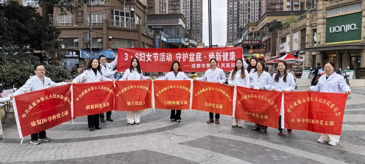 在第 116 个 “三八” 国际妇女节来临之际,为切实关爱女性身心健康,传递节日温暖。2026 年 3 月 8 日,成都市第五人民医院第六党支部、妇产科党支部牵头,联合口腔科党支部、甲状腺乳腺外科党支部等多个党支部的专家,携手温江凤凰社区合能珍宝琥珀党支部,举办了一场多学科联合义诊咨询与科普宣传活动。同时,妇产科党支部在院内盆底康复中心以 “守护盆底 焕新健康” 为主题,开展了专题科普活动,为广大女性同胞送上了一份特殊的节日健康礼物。