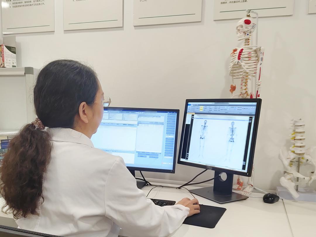 图像传到了核医学科影像组贾晓霞主诊医师的电脑上。屏幕上,正常骨骼应呈现出对称、均匀且灰淡的影像。然而,贾晓霞医生的目光迅速锁定了几处异常:脊柱、肋骨、骨盆和股骨,多处出现了不对称的、浓聚的“热点”,像在灰色的地图上亮起了多个刺眼的“警报灯”。这幅图像所揭示的,高度怀疑是恶性肿瘤的多发骨转移。这份准确的SPECT报告,为临床医生提供了决定性的诊断依据。