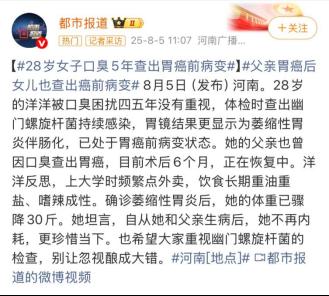 幽门螺杆菌在胃病圈可是小有名气,它是寄生在胃里的细菌,被世卫组织列为1类致癌因子。在我国,幽门螺旋杆菌人群感染率接近50%,意味着约有7亿人的胃中藏有幽门螺旋杆菌,而70%的胃癌都和幽门螺旋杆菌有关!感染后,有人没什么感觉,有人会胃烧、打嗝、胃痛、恶心、呕吐,还有个典型症状就是口臭。