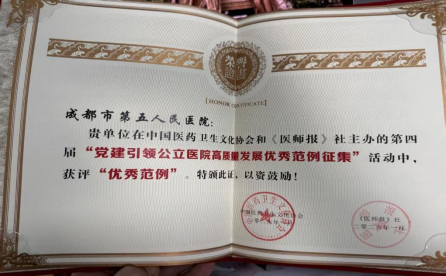 成都市第五人民医院党建案例获评“优秀范例”