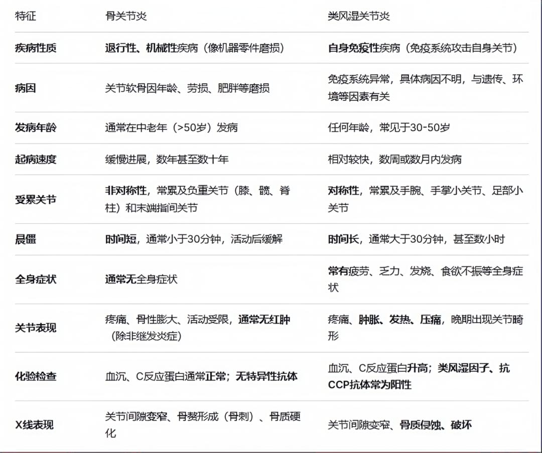 其实啊,我们平时口口相传的“风湿/内风湿”,大概率指的是医生说的“类风湿关节炎”。但好多人总把骨关节炎和类风湿关节炎搞混,小五告诉你:错错错! 它们两个根本不是一回事!
