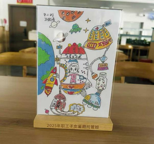 托管班期间,孩子们围绕健康生活、合理膳食、运动健身等主题,绘制的健康主题绘画台卡整齐摆放在医院餐厅,传递健康生活的理念。