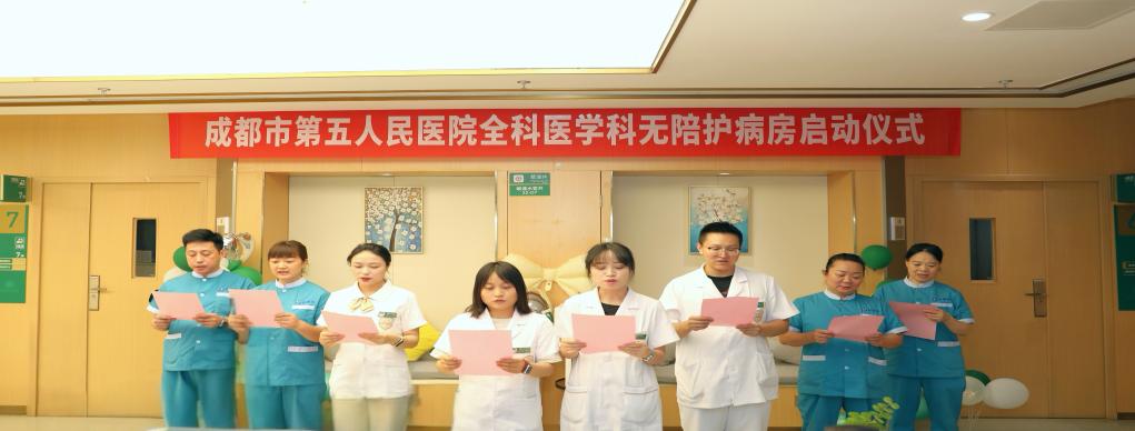 成都市第五人民医院无陪护病房正式启动 发布时间:2025-08-05 分享到: 8月5日,成都市第五人民医院无陪护病房启动仪式在全科医学科顺利举行。院领导、相关部门负责人、医护人员及护理员代表等出席。仪式上,邱军副院长宣布项目启动,全科医学科代表和护理员代表先后发言,随后进行护理员袖章佩戴和集体宣誓等环节。医院将以此为契机,持续优化服务品质,力争打造区域医疗服务温暖名片。该模式成功推行标志着医院在践行“以患者为中心”的服务理念上迈出了关键一步。